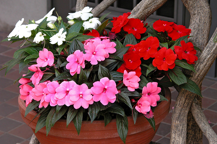 植え付け時期は4月から7月、開花時期は6月から11月で赤、白、ピンク、オレンジなどの花色を楽しむことができます。別名「アフリカホウセンカ」と呼ばれる多年草ですが、寒さに弱く日本の冬に耐えられず枯れてしまうので日本では一年草として扱われます。