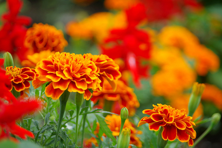 植え付け時期は4月から6月、開花時期は6月から10月。赤、オレンジ、黄の花色を楽しむことができます。また、マリーゴールドの中にはコンパニオンプランツとして、野菜苗と一緒に植えることで害虫防除になるとされているものあります。