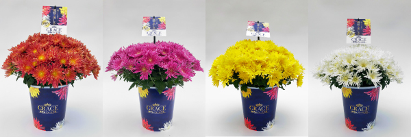 ちょっぴり贅沢な気分が楽しめる、ゴージャスな極大輪マムです。一般的な品種の約4倍にもなる大きさと、美しく丸くまとまる株姿が印象的。マルチフローラマム(たくさんの小さな花を咲かせるタイプのマム)では珍しい、筒状の花びらが放射状に広がるユニークなスパイダー咲きも魅力です。