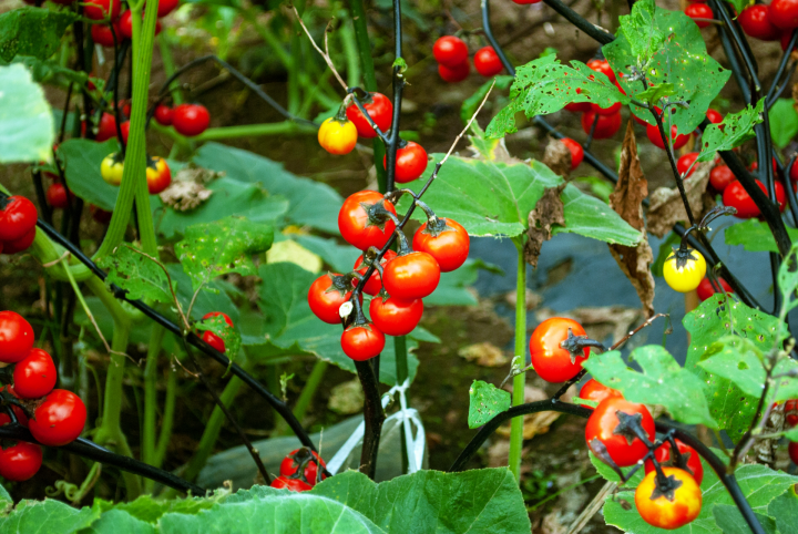 赤く実ったミニトマトは、庭によく映えて、旬の季節感を感じさせてくれます。