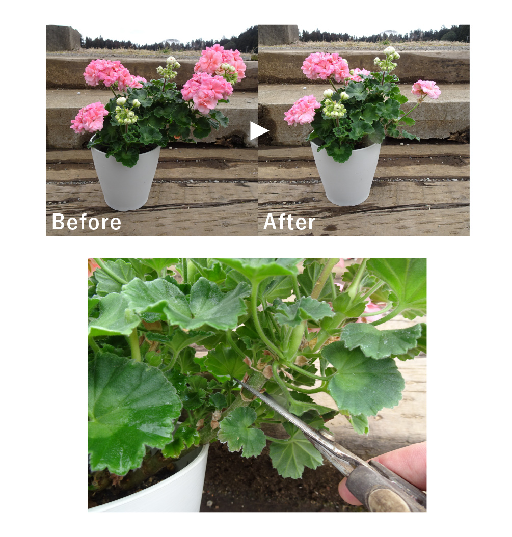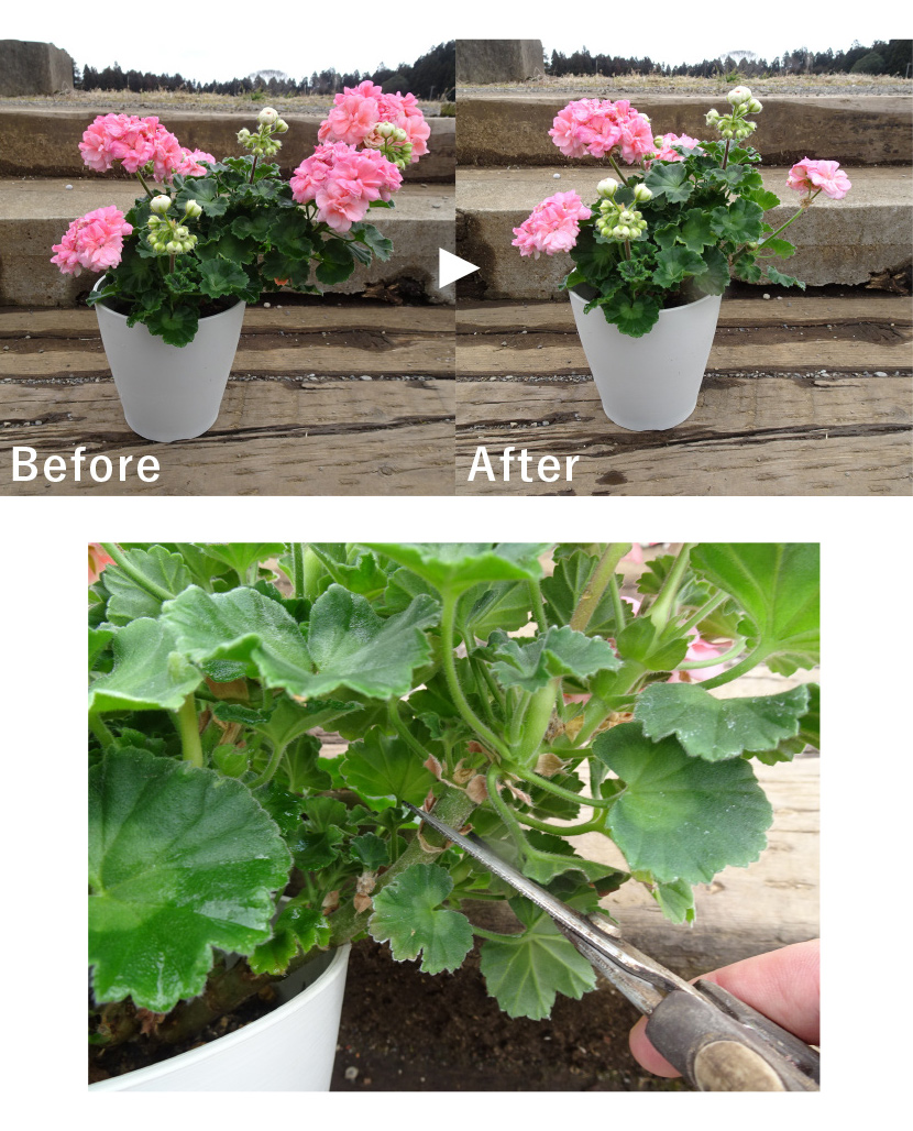 開花はじめと開花終わりの花が少ない時は花芽を避ける必要がありますが、生育旺盛な時期は次々に咲くので、花を気にせずに切り戻すと最終的にきれいな株姿になります。地植えや株を大きく育てたい時期は切り戻しの必要はありません。形を整えたい時に行ってください。