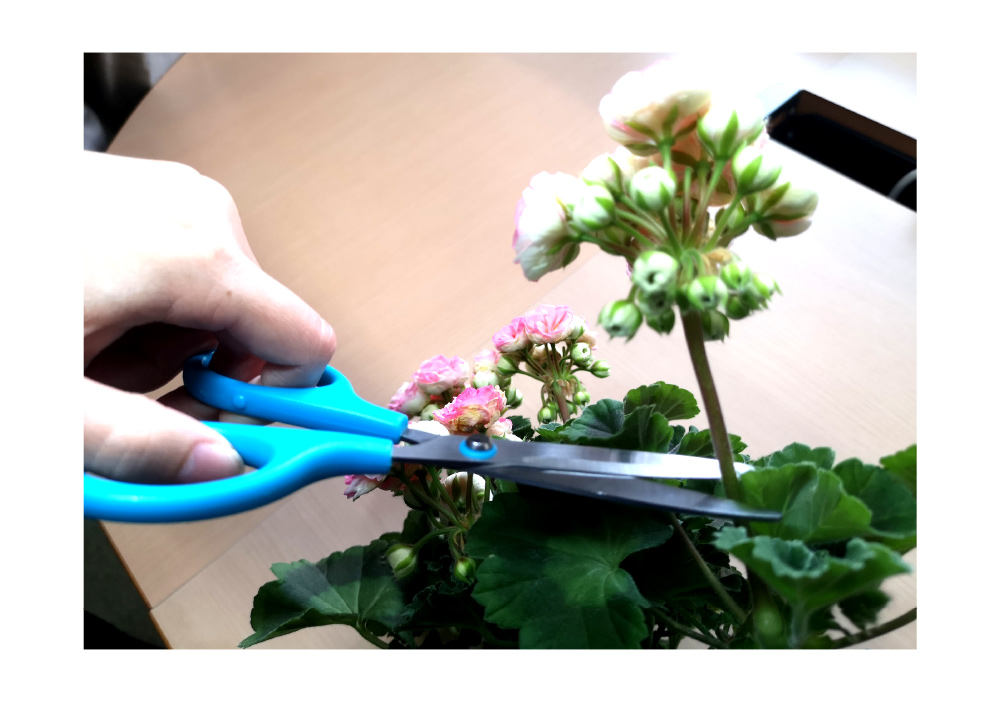 ②ロザリアは花首の元ギリギリのところで切り取ります。出来るだけ長めに切って後で調整します。